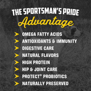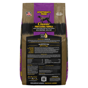 Sportsman's Pride Professional Formula is designed for hardworking canine athletes under stress or extreme conditions. Our formula contains elevated protein and fat levels for endurance and strength to help keep your dog at the head of the pack. Made with our exclusive Omega Pride Skin & Coat System.