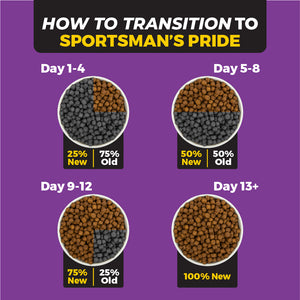 Sportsman's Pride Professional Formula Dog Food is formulated to meet the nutritional levels established by the AAFCO Dog Food Nutrient Profiles for all life stages of dogs, including growth of large size dogs (70 lbs. or more as an adult).