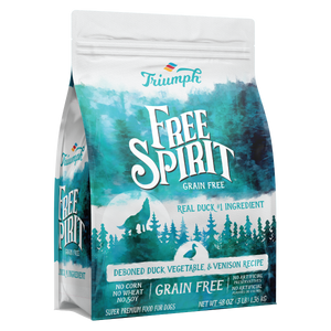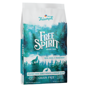 Triumph Free Spirit Grain Free Duck, Vegetable & Sweet Potato Recipe Dog Food is a healthy and holistic super-premium food that is great for dogs with food sensitivities. The advanced grain-free formula combined with the duck, sweet potato, & venison ingredients not only taste great to your best friend, but provide essential nutrients that are necessary for living a healthy life. Awaken your dog's Free Spirit and #TriumphTogether.