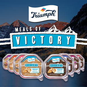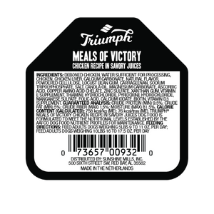 Triumph Meals of Victory Chicken Recipe Dog Food is made with select wholesome ingredients and slowly cooked to mouthwatering perfection! Great as a stand alone meal for smaller furry friends, or a dry food topper that will get those paws begging for dinner time! Your best friend will love the taste, quality, and nutrition that comes with this meal of sweet victory. Awaken your dog's Free Spirit!