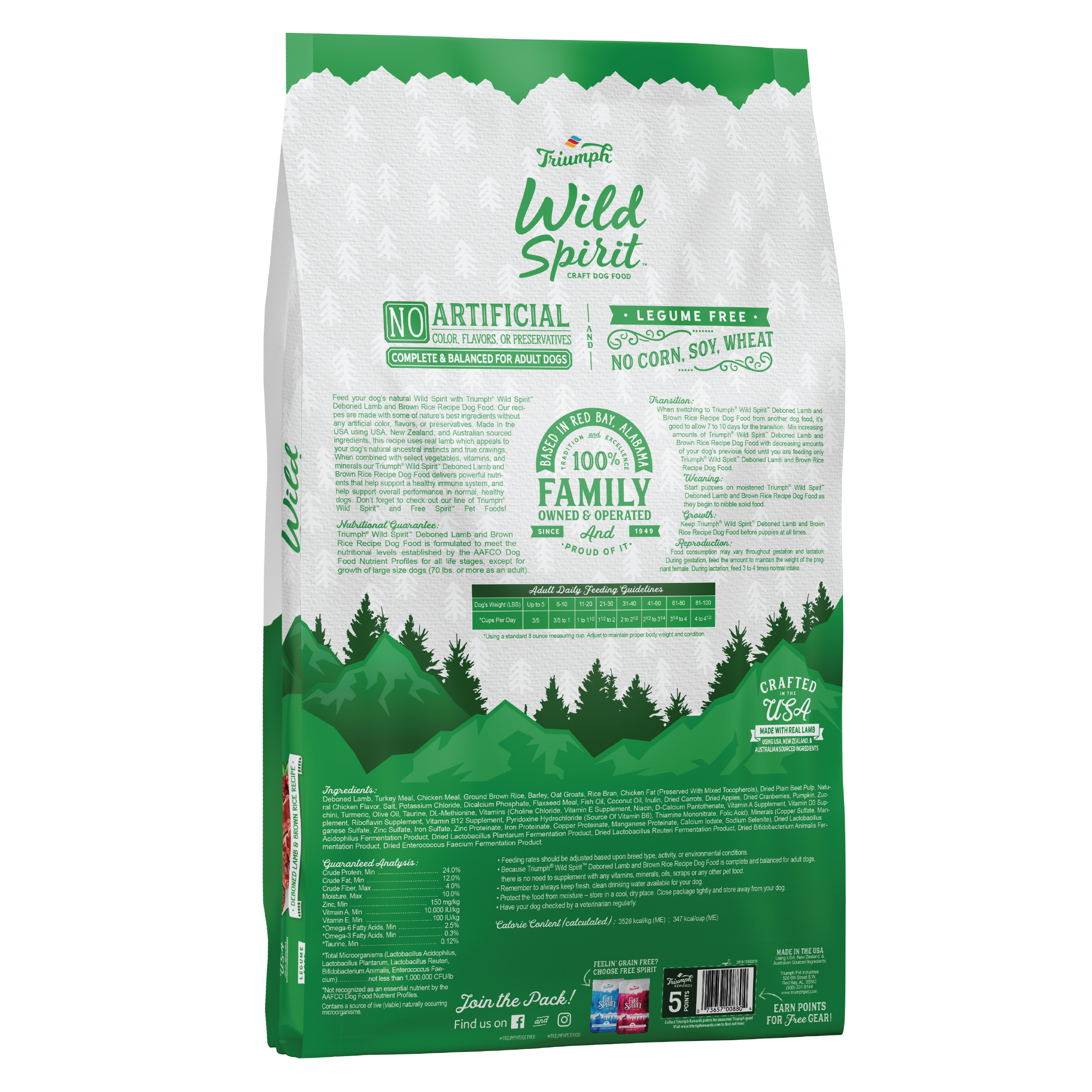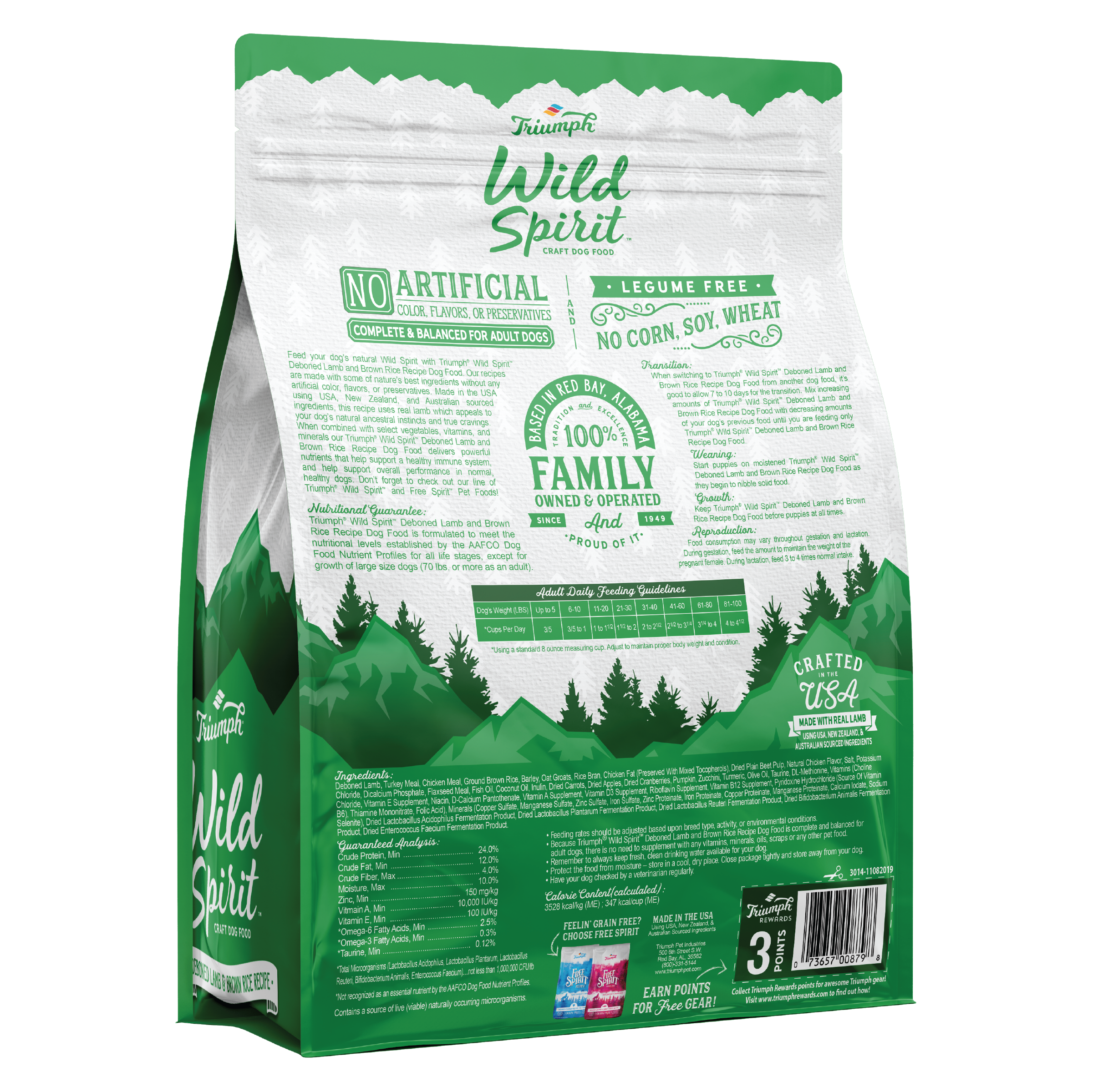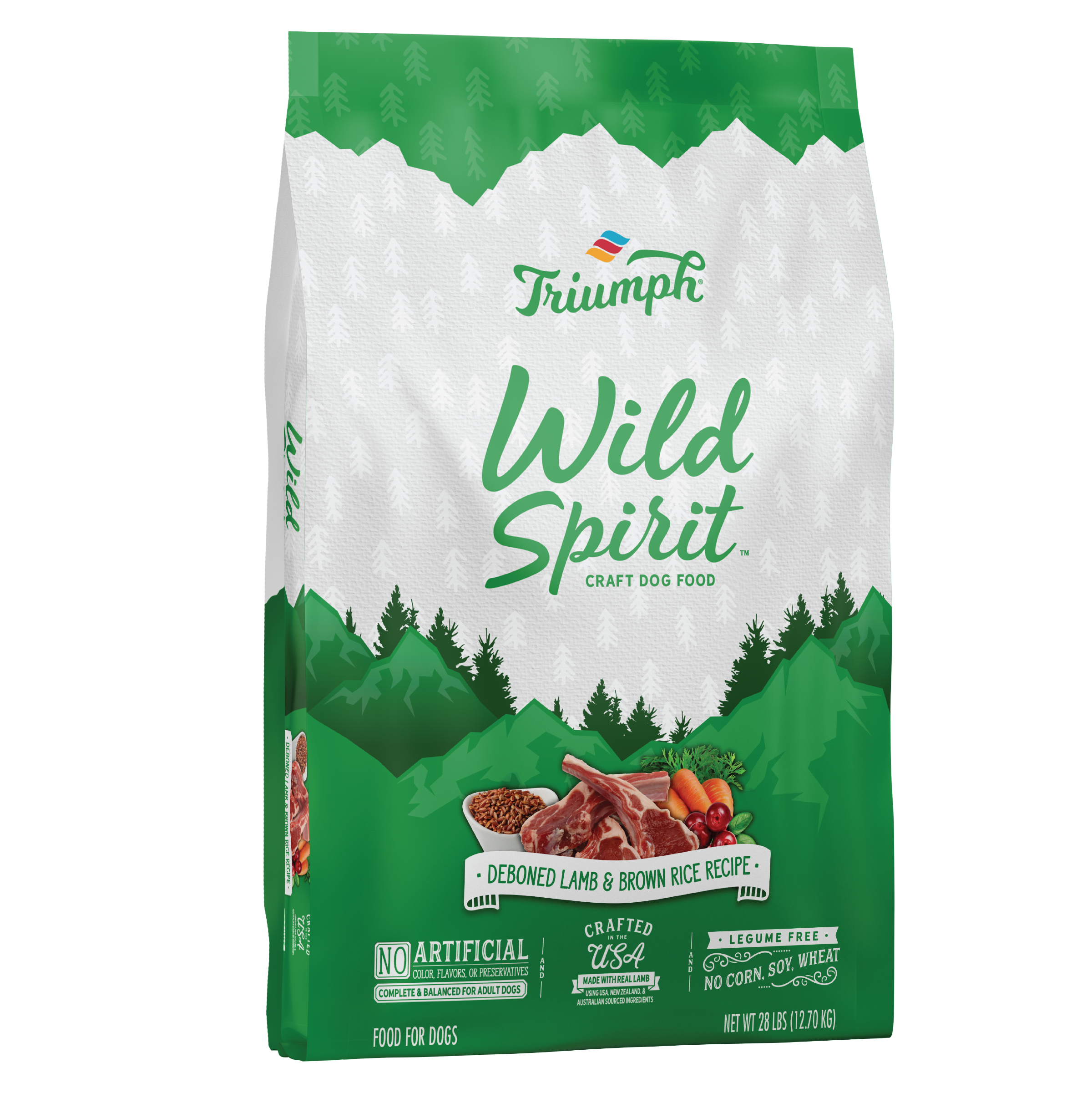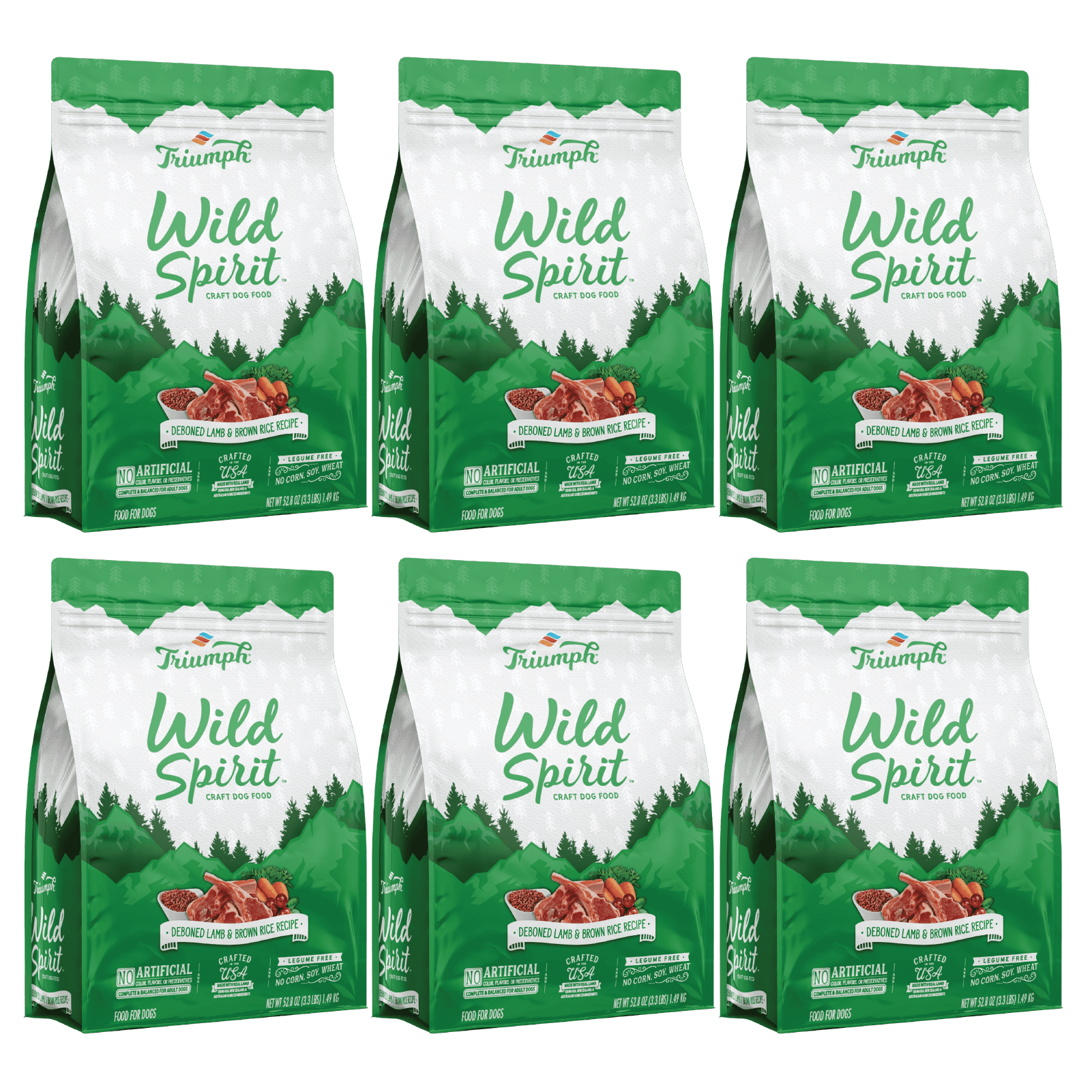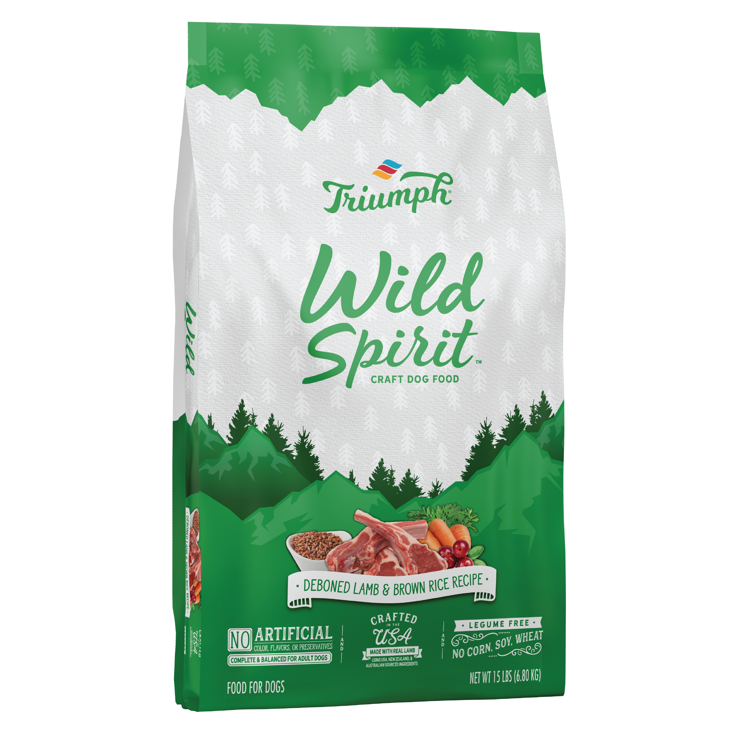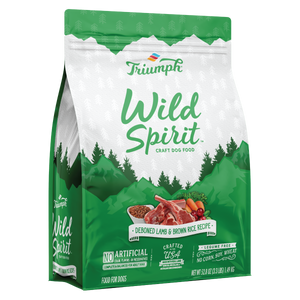 Triumph Wild Spirit Deboned Lamb and Brown Rice Recipe Dog Food is formulated to meet the nutritional levels established by the AAFCO Dog Food Nutrient Profiles for all life stages, except for growth of large size dogs (70 lbs. or more as an adult).