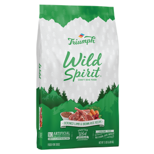 Feed your dog's natural Wild Spirit with Triumph Wild Spirit Deboned Lamb and Brown Rice Recipe Dog Food. Our recipes are made with some of nature's best ingredients, without any artificial color, flavors, or preservatives. Made in the USA using USA, New Zealand, and Australian sourced ingredients, this legume free recipe uses real lamb which appeals to your dog's natural ancestral instincts and true cravings. When combined with select vegetables, vitamins, and minerals our Triumph Wild Spirit Deboned Lamb and Brown Rice Recipe Dog Food delivers powerful nutrients that help support a healthy immune system and help support overall performance in normal, healthy dogs. Don't forget to check out our line of Triumph Wild Spirt and Free Spirit Pet Foods!