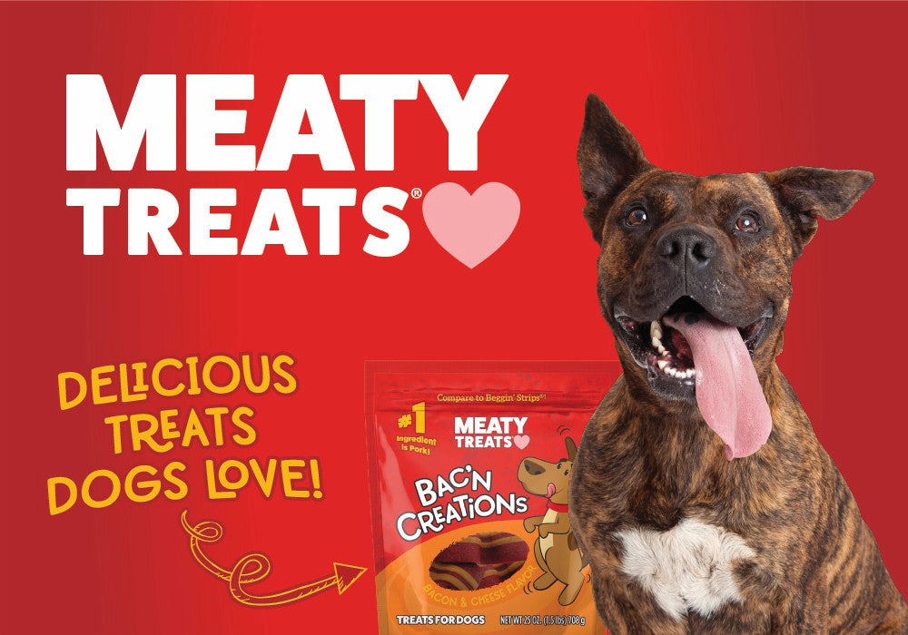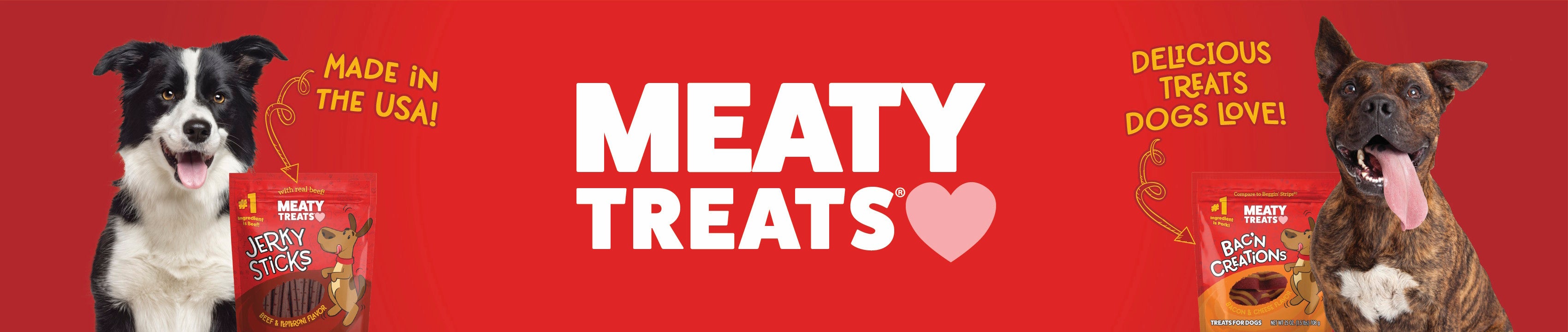 Meaty Treats is a dog treat brand known for offering protein-packed, savory snacks that your dog will love. Made with real meat as the first ingredient, these treats provide a rich source of essential nutrients, helping to support muscle health and overall energy levels. Whether it's beef, chicken, or bacon, each Meaty Treat is designed to satisfy your dogβs natural cravings while providing high-quality, wholesome ingredients. Free from artificial colors and flavors, Meaty Treats ensures every bite is not only tasty but also healthy for your furry friend.