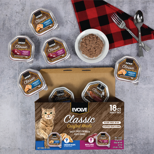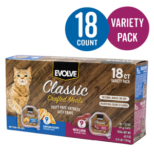 Classic Crafted Meals Wet Cat Food Variety Pack with Chicken & Liver | 3.5oz - 18 pk | Evolve