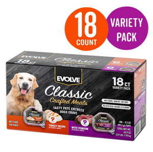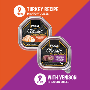 Classic Crafted Meals Wet Dog Food Variety Pack with Turkey & Venison | 3.5 oz - 18 pk | Evolve