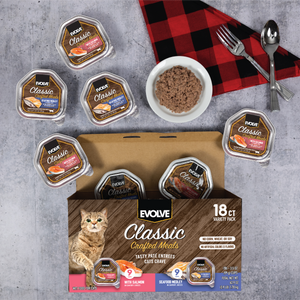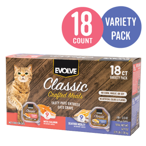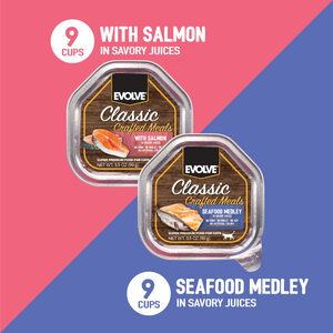 Classic Crafted Meals Wet Cat Food Variety Pack with Salmon & Seafood Medley | 3.5 oz - 18 pk | Evolve