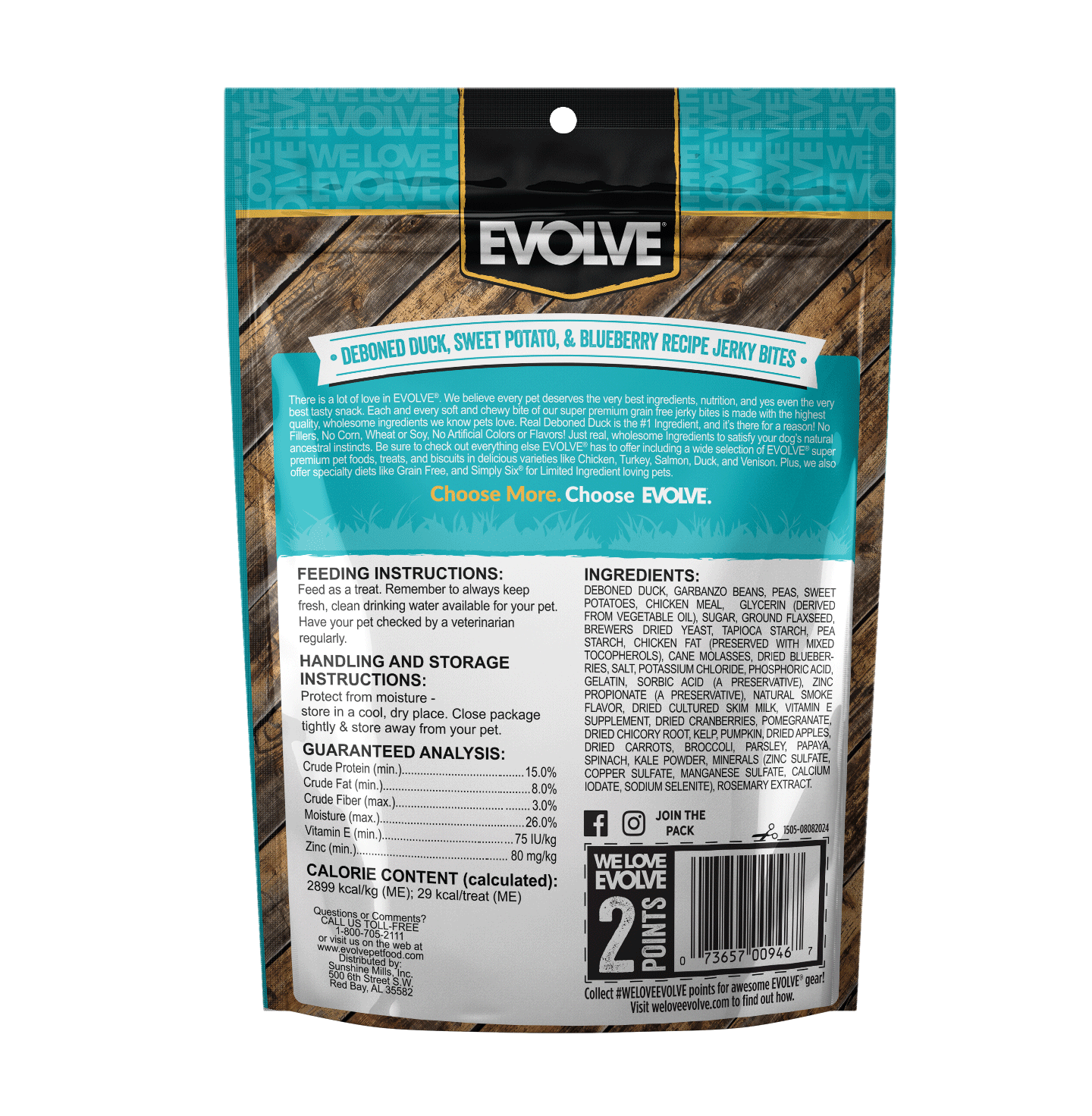 Grain Free Duck, Sweet Potato & Blueberry Jerky Bites | 12 oz | Evolve