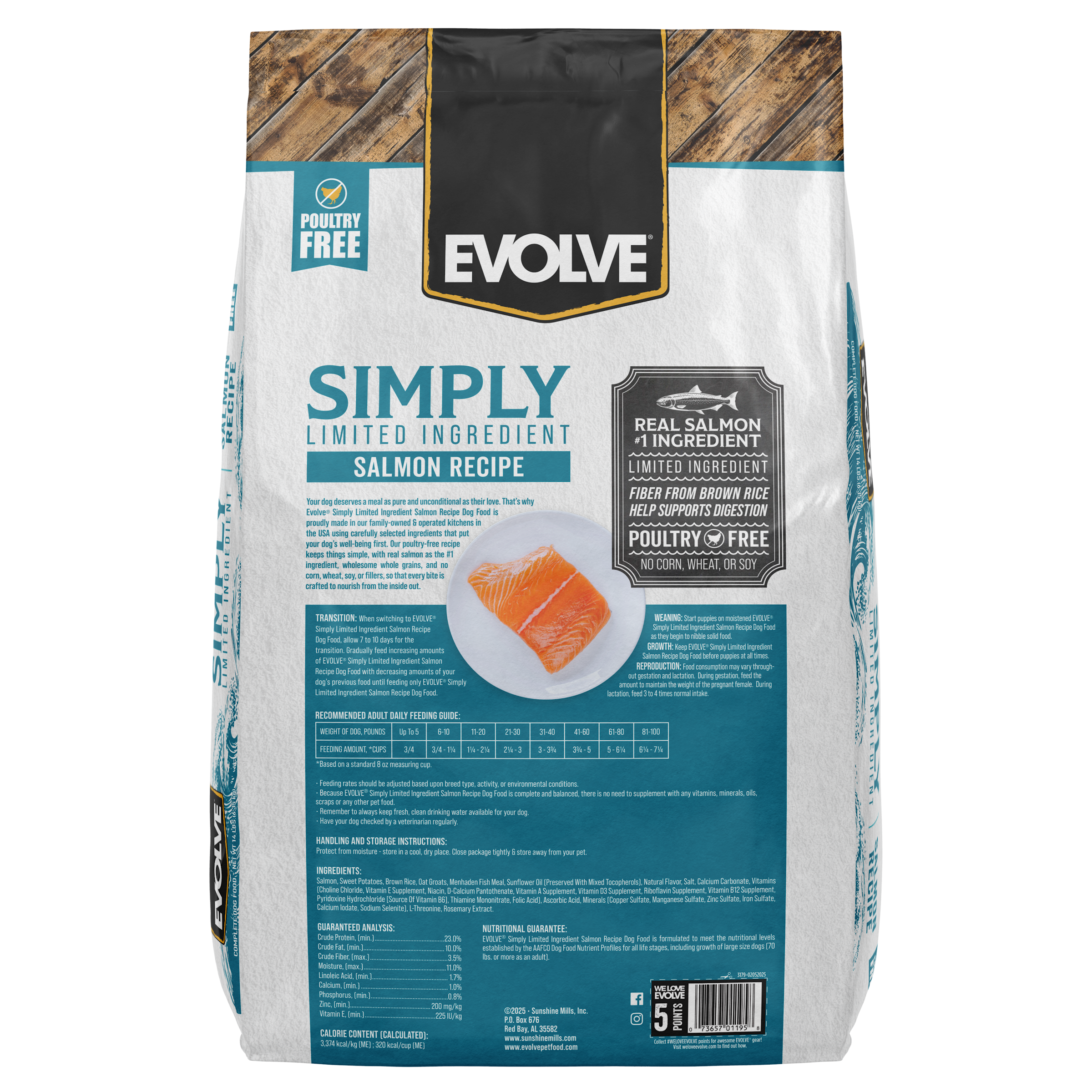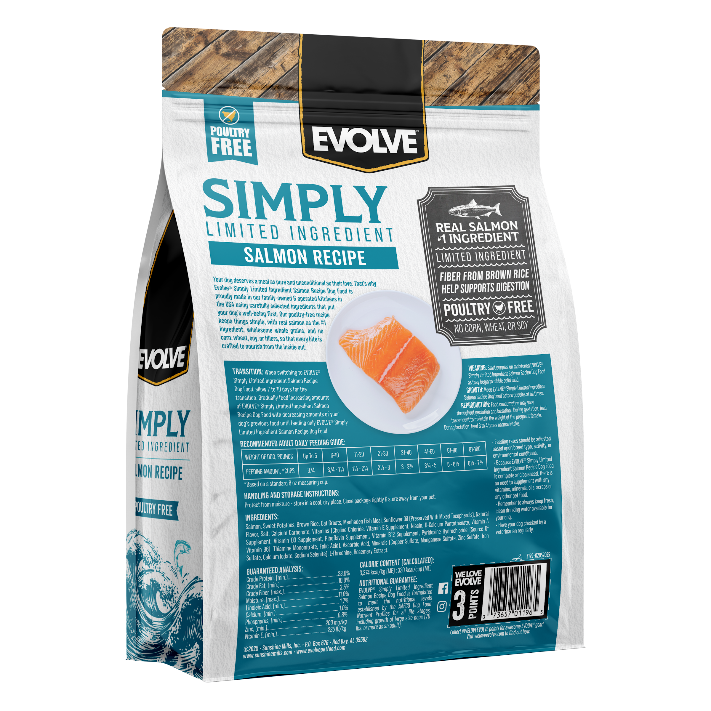 EVOLVE® Simply Limited Ingredient Salmon Recipe Dog Food is formulated to meet the nutritional levels established by the AAFCO Dog Food Nutrient Profiles for all life stages, including growth of large size dogs (70 lbs. or more as an adult).