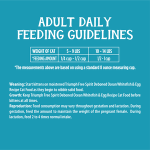 Triumph Free Spirit Deboned Ocean Whitefish & Egg Recipe Cat Food is formulated to meet the nutritional levels established by the AAFCO Cat Food Nutrient Profiles for all life stages.