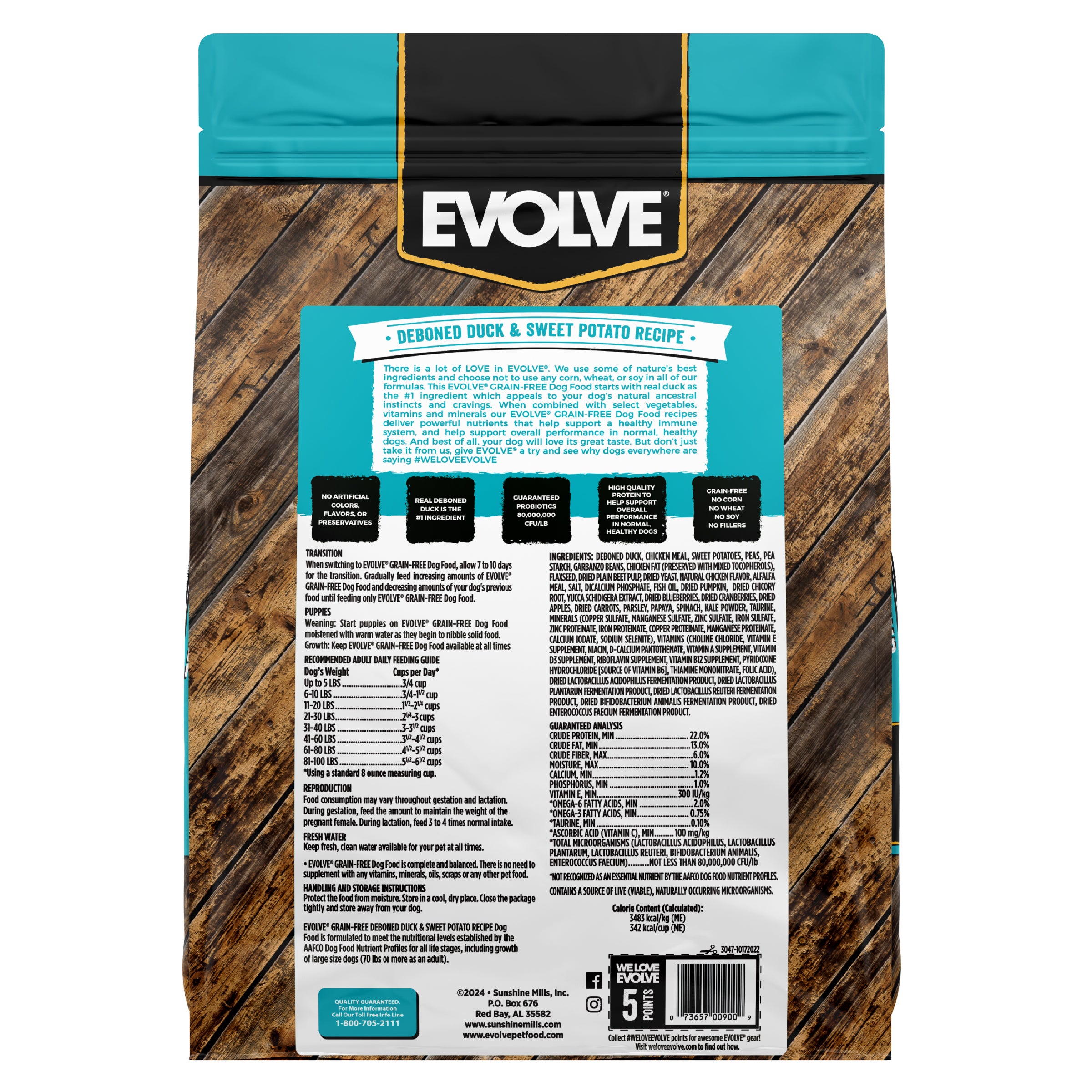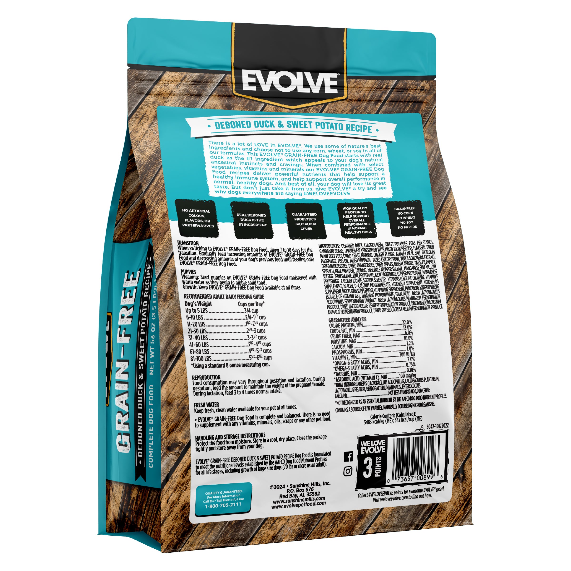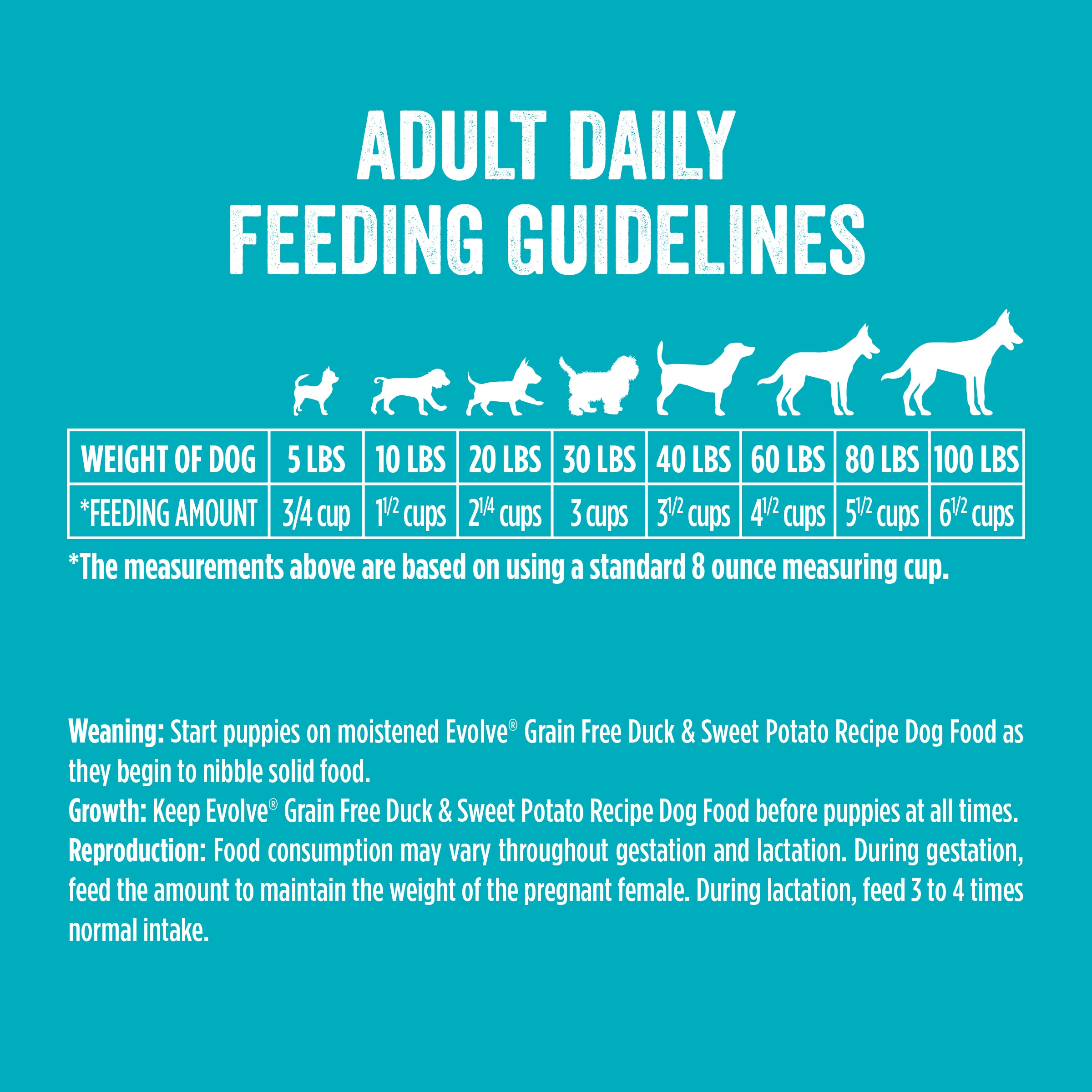 Evolve Grain Free Duck & Sweet Potato Recipe Dog FoodΒ is formulated to meet the nutritional levels established by the AAFCO Dog Food Nutrient Profiles for maintenance.