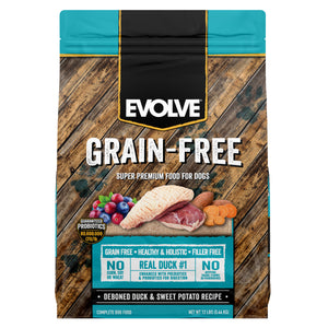 Evolve Grain Free Duck & Sweet Potato Recipe Dog Food is a healthy and holistic super-premium food that is great for dogs with food sensitivities, which in turn promotes a healthy immune system. The advanced grain-free formula combined with the duck and sweet potato ingredients not only taste great to your best friend, but provide essential nutrients that are necessary for living a healthy life. Choosing Evolve Grain Free Duck & Sweet Potato Recipe Dog Food is the key to a healthy and holistic future for your best friend!