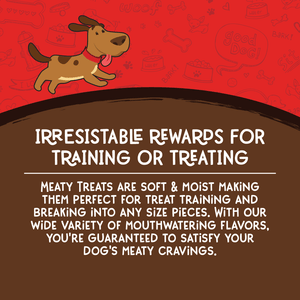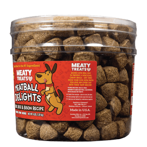 Meaty Treats Meatball Delights Beef, Rice & Bison Recipe Meatballs are a delightful, in between meal snack that your dog will love. Because we care about the quality of our pet treats, we chose to use real beef and bison in this unique formulation. This tasty snack has an eye appealing meatball shape and chewy texture that will entice your dog to want more. Plus, the beef and bison flavors creates a mouth watering aroma that your dog will find irresistible. By choosing to feed your best friend Meaty Treats Meatball Delights Beef, Rice & Bison Recipe Meatballs, you are choosing a bright future for your pet!
