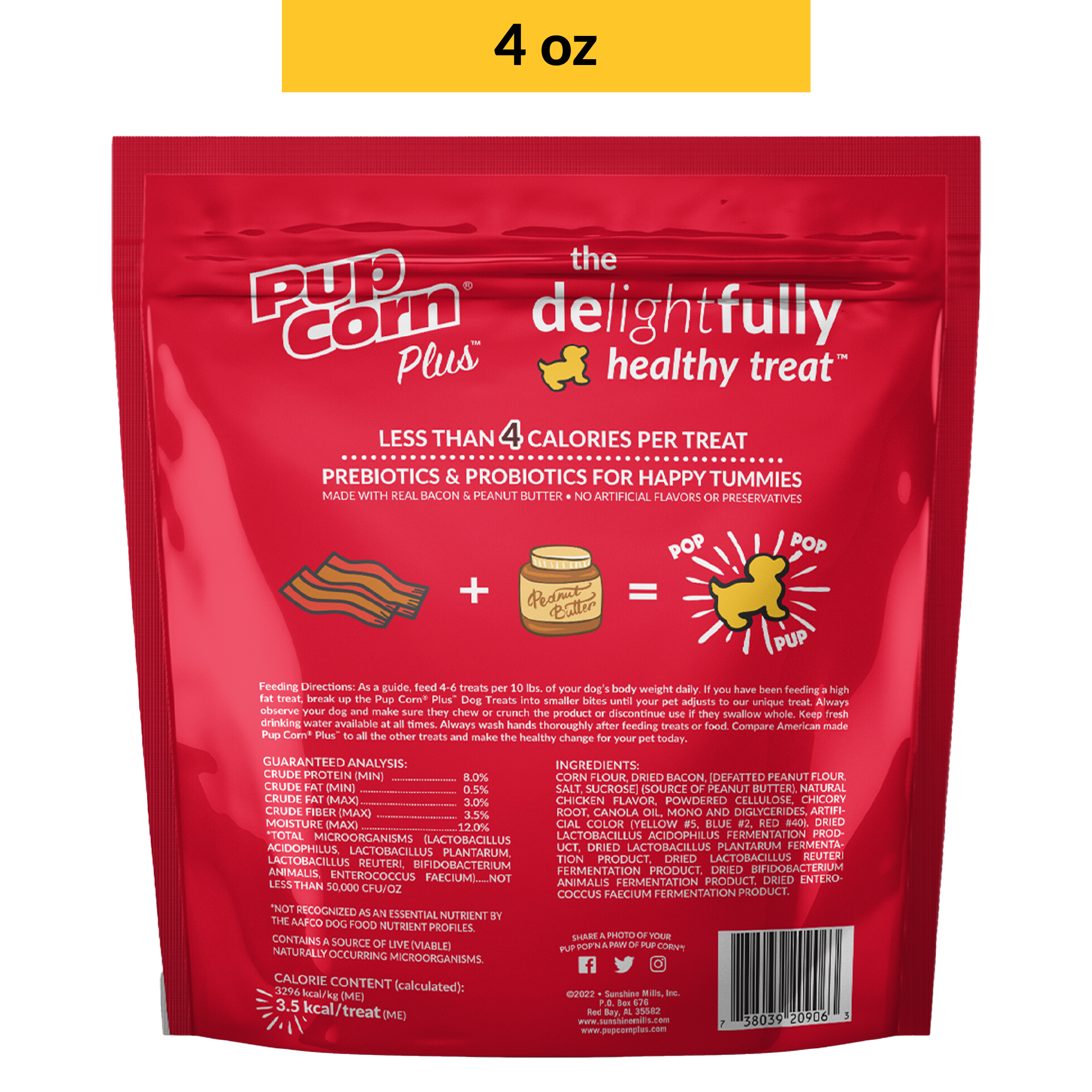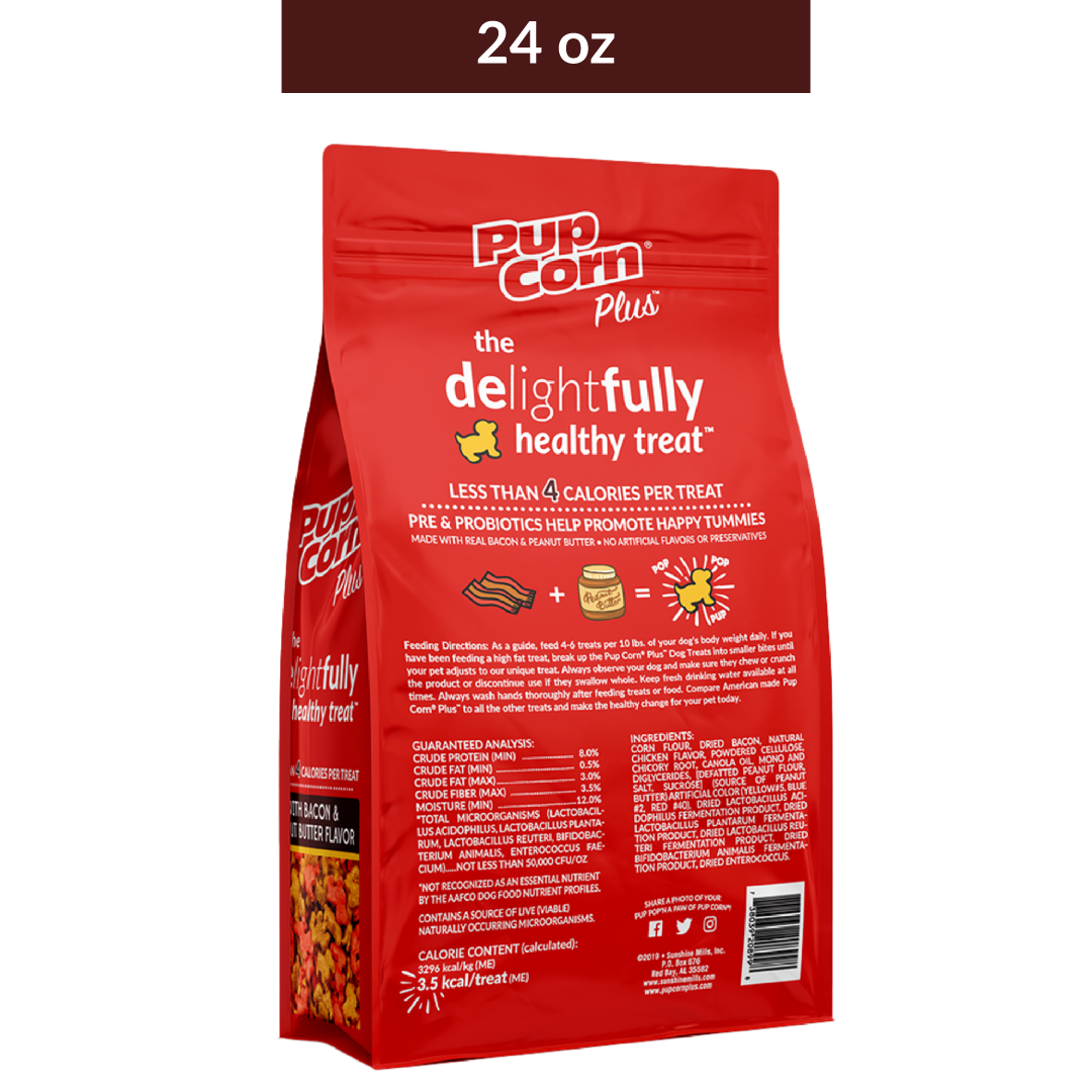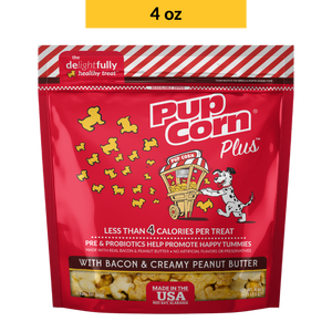 Bacon & Peanut Butter Dog Treats | 4 oz, 24 oz | Pup Corn Plus