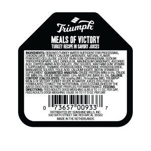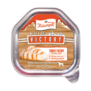 Triumph Meals of Victory Turkey Recipe Dog Food is formulated to meet the nutritional levels established by the AAFCO Dog Food Nutrient Profiles for maintenance.